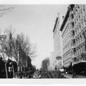 8th and K Streets, looking west, with Montgomery Ward on the left and Hotel Lenhart on the right. (2 copies)