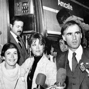 Governor Edmund G. Brown, Jr., Helen Reddy and Jane Fonda talk to newsmen at Los Angeles' Union station before departing on a fund-raiser "Brown for President" campaign train to San Diego.