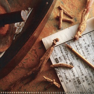 Scope/Content: November image titled Ginseng from a 1989 calendar titled Advances in Healthcare; items pictured are from the University of California, San Francisco Archives, Health Sciences Artifact Collection; calendar copyright 1988 Harwood Co.; 1807 Japanese manuscript, yagen (Japanese grinding tool similar to a mortar and pestle).