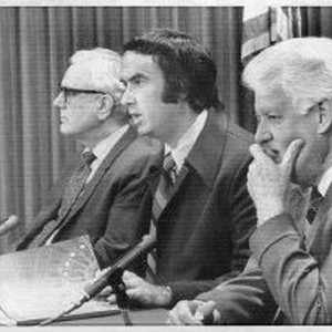 Randolph Collier (Democrat, Yreka), on the far right, Alfred Alquist (Democrat, San Jose) on the far left and John Burton in the center (Democrat San Francisco) all California State Senators