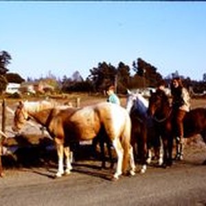 Slide, color transparency: A group of kids and their horses in a rural area, 1970.