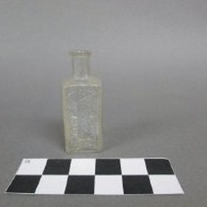 Bottle, clear glass with raised letters "A.C. Tufts Druggist Sacramento"