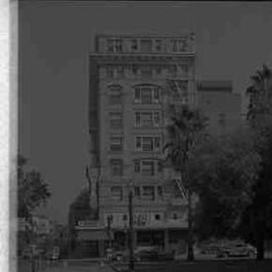 SERIES - Two views of the corner of 9th and L streets with the Hotel Lenhart, the Hotel Noonan and Bloombury Realty in view. The sidewalk and a corner of Capitol Park can also be seen.