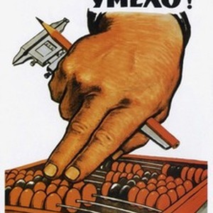 A Soviet poster dedicated to work ethics. Caption reads, "Hoziaistvui umelo! / Хозяйствуй умело!", meaning, "Manage with skills!". [Description English/roman)]