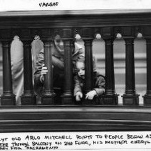 Two year old, Arlo Mitchell points to the people below as he peers through the balcony on the second floor of the California State Capitol building. His mother, Cheryl looks on