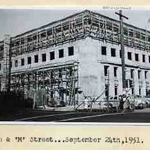 Typed on binder page "7th & 'M' Street...September 24th, 1951". view is of partially completed building.