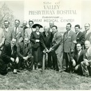 Groundbreaking for Valley Presbyterian Hospital. Mr. and Mrs. William P. Whitsett are in the center of the image.