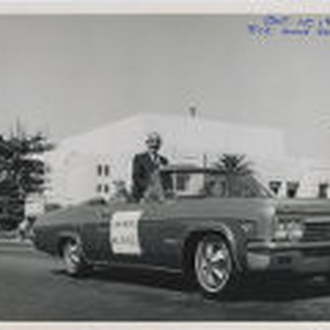 Leon Peters serving as Grand Marshall of the Fresno State College Homecoming Parade