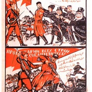 A poster dedicated to the international solidarity of proletarians. In Russian and Arabic (Turkish?). Caption in Russian reads, "Proletarii vsekh stran, soediniaites'! / Пролетарии всех стран, cоединяйтесь!", meaning, "Proletarian of all countries, unite!". [Description English/roman)]