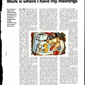 Article by Charles Handy debating the necessity of the office space as a place for workers to be during all working hours, 1992; Charles Handy Papers; Box 20, Folder 5; 1 page