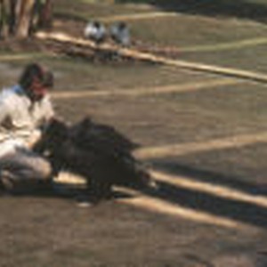 The zookeeper checking on a vulture named "Gronk".