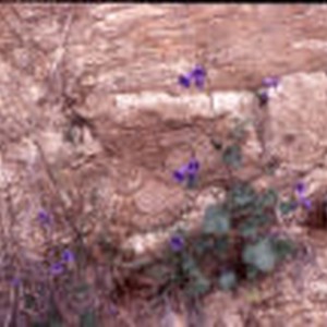 Purple flowers on rocky ground.