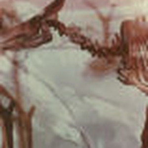 A skeleton of an animal that lived during the Pleistocene epoch.