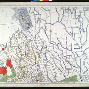 WPA Land use survey map for the City of Los Angeles, book 7 (Topanga Canyon to Hollywood District), sheet 16. Includes: [Title page and] legend [for Book] no. VII Composite index to Land use map books [for Book 7]. Land use survey - City of Los Angeles. Department of City Planning. These maps were prepared with the assistance of the Works Progress Administration project no. 665-07-G-226 through 1939 to 1940. The land use data contained herein was compiled from a survey made with the assistance of the Civil Works Administration project no. 642, State Emergency Relief Administration project nos. 1-F2-318 and 1-F2-318A and Works Progress Administration project nos. 65-3-4377, 1101-2011 and 465-03-3-106. This survey functioned from Dec. 18, 1933 to May 8, 1939 and covers approximately 460 square miles within the boundary of the City of Los Angeles. It includes 347 colored drawings bound in 10 volumes of which this is no. VII. The land use survey was supervised by the Zoning Engineer. The land use maps were supervised by the Illustrative Planning Engineer for the Sponsoring Department.