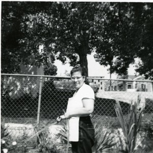 Hispanic Americans--California--East Los Angeles Landscape irrigation--California--East Los Angeles Lawns--California--East Los Angeles Martinez, Petra Women--California--East Los Angeles Cespedes--California--Este de Los Angeles Hispanoestadounidense--California--Este de Los Angeles Mujeres--California--Este de Los Angeles Riego--California--Este de Los Angeles