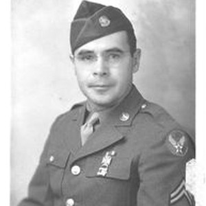Photo--black and white: Corporal Eddie Borba in Army Air Corp uniforn in 1943.