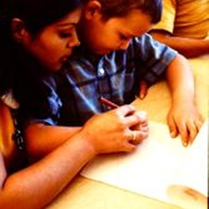 Image / Unidentified mother and child drawing pictures, possibly at Analy Nursery School, Sebastopol, …