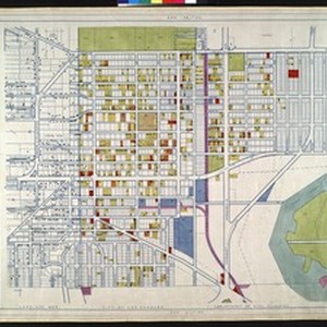 WPA Land use survey map for the City of Los Angeles, book 10 (Shoestring Addition to San Pedro District), sheet 14. Includes: [Title page and] legend [for Book] no. X Composite index to Land use map books [for Book 10] Index to Book no. 10. Land use survey - City of Los Angeles. Department of City Planning. These maps were prepared with the assistance of the Works Progress Administration project no. 665-07-G-226 through 1939 to 1940. The land use data contained herein was compiled from a survey made with the assistance of the Civil Works Administration project no. 642, State Emergency Relief Administration project nos. 1-F2-318 and 1-F2-318A and Works Progress Administration project nos. 65-3-4377, 1101-2011 and 465-03-3-106. This survey functioned from Dec. 18, 1933 to May 8, 1939 and covers approximately 460 square miles within the boundary of the City of Los Angeles. It includes 347 colored drawings bound in 10 volumes of which this is no. X. The land use survey was supervised by the Zoning Engineer. The land use maps were supervised by the Illustrative Planning Engineer for the Sponsoring Department.