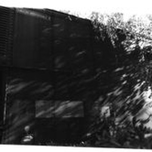 Photo--black and white: P&SR (Petaluma and Santa Rosa) railroad box car put in place behind the Sebastopol P&SR railroad depot that has become the West County Museum run by the Western Sonoma County Historical Society