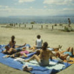 Students lay in the sun at Mecca Beach on the Salton Sea.