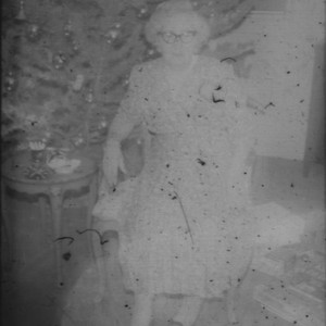 Image / Unidentified woman (Peters relative?) seated in front of Christmas tree