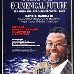Flier for lecture by David D. Daniells III, "Forging an ecumenical future: framing the Afro-Pentecostal past" at the opening of the 20th Society for Pentecostal Studies meeting, Memphis, Tennessee, 2011 March 10-12. [Description English/roman)]