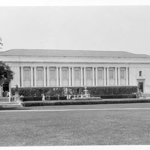 View of the library building from south, with visitors. MS note on verso reads: "Exterior - Library Building, c. 1930."