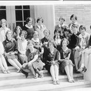 Photo, Sepia: Analy 1927 yearbook, Azalea, photo of The Girl's Cabinet. Its aim "to improve social status and to promote the good fellowship of the school. Phillippa Williamson was the student leader and Miss Davis, front row in dark stockings, was the teacher.