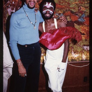 Image from a collection of 35mm photographic slides depicting nightlife events, circa 1970-1977, including images of a Sylvester concert and what may be Halloween 1977. The images predominantly depict Black performers and attendees, including people in costumes and drag. These slides were salvaged by the donor, Deborah Deegan.