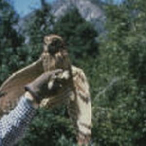 Owl being hand held.
