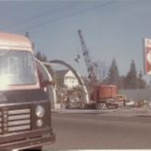 Photo--color: The Purity Market in the process of being torn down, about 1960. The Purity stood at the corner of McKinley and Main Streets in Sebastopol. The wrecking crane has almost completely demolished the store. The Purity sign still stands close to the intersection.