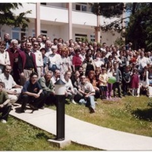 Fotografija grupe ljudi ispred hotela u Crikvenici [Description (original non-English/roman language/script)] Photograph of a group of people in front of a hotel in Crikvenica. [Description English/roman)]