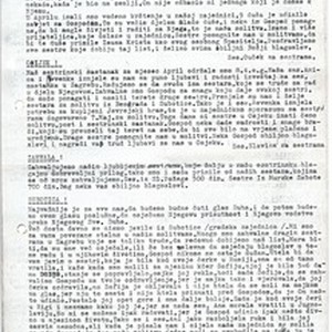 Circular letter for May 1979 containing short messages from sisters in churches in Murska Sobota, Osijek and Subotica with a short thanks for the received financial support. [Description English/roman)] Okružno pismo za svibanj 1979. godine koje sadrži kratke poruke sestara iz crkava u Murskoj Soboti, Osijeku i Subotici s kratkom zahvalom za primljene dobrovoljne priloge. [Description (original non-English/roman language/script)]