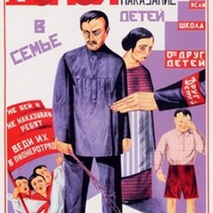 A poster dedicated to upbringing of the Soviet children. Caption on top reads, "Doloi izbienie i nakazanie detei v sem'e / Долой избиение и наказание детей в семье", meaning, "Say "No" to child abuse and domestic and family violence". [Description English/roman)]