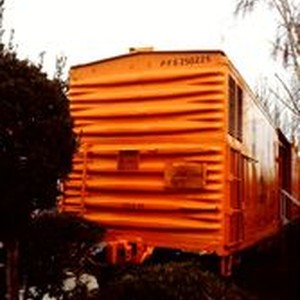 Slide, color Ektachrome transparency: The refurbished, Southern Pacific boxcar Pacific Fruit Express for the West County Museum at 261 S. Main Street in Sebastopol. R.C Hall Photography 1076 Waverly Way, Sebastopol