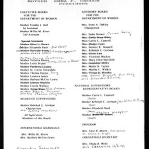 Church of God in Christ Department of Women executives and committees, ca.1994-1997. [Description English/roman)]