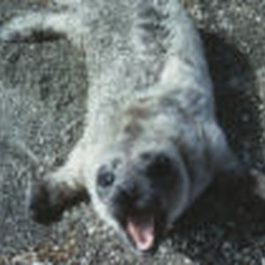 A close view of a seal pup with its mouth open while relaxing on Isla San Martin.