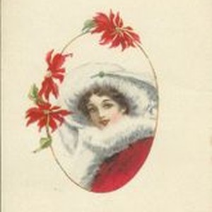 Postcard--color print: Christmas message. Oval picture of woman in Christmas dress. Handwritten message on verso from Ida E. Peabody to Mary Guisler of Coalinga, Fresno County, California. Mary was originally from Graton. The postcard was written postmarked December 17, 1913 and is stamped with a Panama Pacific San Francisco 1915 Exposition mark. The postage stamp is a one cent stamp with Balboa's picture and "San Francisco 1915."