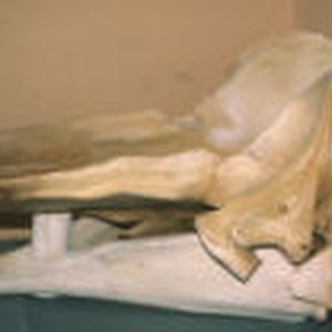 View of the left side of a whale skull at the institute.