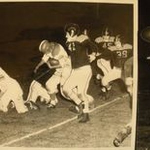 Photo--Black and white: Analy High School Tigers Football, 1953. Two unidentified game photos. Player #4 Paul Vaz.