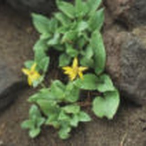 Yellow flowers and green leaves grow out of rocky soil on Mount Scott trail.