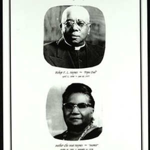 Saintsville Sanctuary Church of God in Christ in loving memory: Bishop F.L. Haynes (1898 April 11 - 1977 June 30) & Mother Ola Mae Haynes (1900 October 28 - 1978 September 16), after 1978. From an unidentified publication. [Description English/roman)]