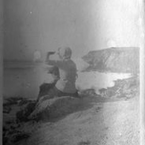 Eva Fellows looking out to the Pacific Ocean at Bodega Bay. Circa 1918