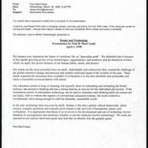 1998, April 1. Part of: Paul B. MacCready Papers ca. 1930-2002. Series 4: Writings and publications; Subseries 2: Talks; Box 11, Folder 17