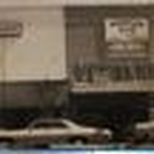 Photo--black and white: Six photos taped together as two panoramas on the east side of Main Street, about 150 block, Sebastopol circa 1960's. Businesses seen: Jack's, Jack Clark Mens & Boys Shoes & Clothing, Turley's Bakery, People's Music & Main Street Music School, Montgomery Ward, Sebastopol Book Shop.