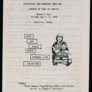 Women's day program, Texas Southwest Jurisdiction Annual Ministers and Workers Meeting, COGIC, Houston, Texas, 1976 April 2. [Description English/roman)]
