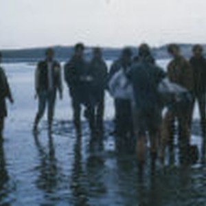 A large group of students show off in the mud after a long day of digging for clams, in the tidal flats at Morro Bay.