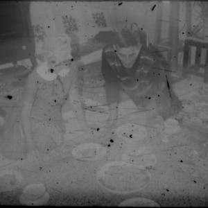 Image / Unidentified man and woman eating a meal on a carpet