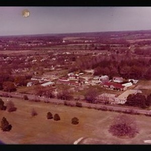 Aerial photograph of an unidentified campus [?]. "Aerial photography, Bob Hand, photographer, 2743 Old Canyon Rd., Jackson, Miss." -- stamped on back. [Description English/roman)]
