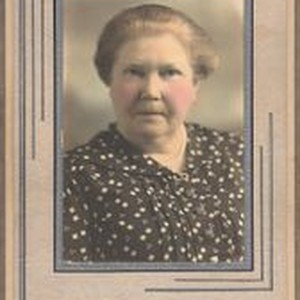 Photo--hand tinted color, in studio folder: Portrait photo of unknown woman, about 1940s. Photographed by Nelson Studio, Santa Rosa, CA